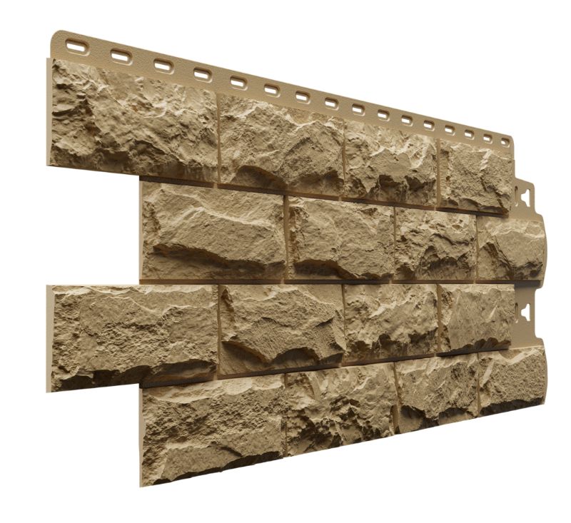 Фасадные панели оттенка «Шатель» неотличимы на вид от натуральной скальной породы. Высокотехнологичная окраска фактурного прочного материала позволяет достигнуть максимальной реалистичности.