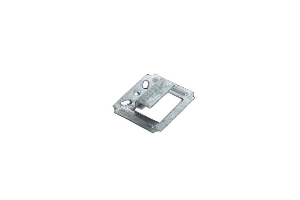 Крепеж изготовлен из оцинкованной стали толщиной 0,5 мм. По габаритам в 2 раза превосходит стандартный кляймер для вагонки. Широкая лапка с двумя ребрами жесткости у основания крепче прижимает доску к направляющим и выдерживает больший вес, чем кляймер для вагонки. Два ребра жесткости по бокам крепления приподнимают доску на 0,5 мм над телом крепежа и создают дополнительную микровентиляцию между направляющей и доской. Два овальных наклонных отверстия предназначены для использования строительных скоб, изогнутая лапка повышает комфорт монтажа.