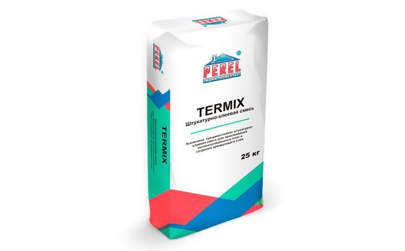 Штукатурно-клеевая смесь PEREL Termix 0319 – усиленная, трещиностойкая смесь для приклеивания теплоизоляционных плит и создания армирующего слоя с использованием щелочестойкой сетки с плотностью не ниже 145 гр/м2.
